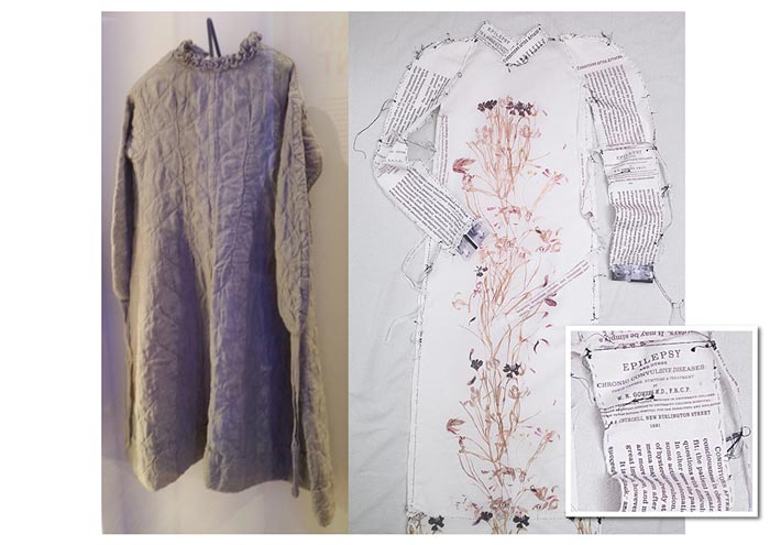“ - Taking up a needle instead of a pen, Leslie stitches -deliberately badly - a ‘Post-Seizure, Pre-Raphaelite’ dress printed with Sue’s tulips, by now even more wilted, and Gowers’ notes on epilepsy.