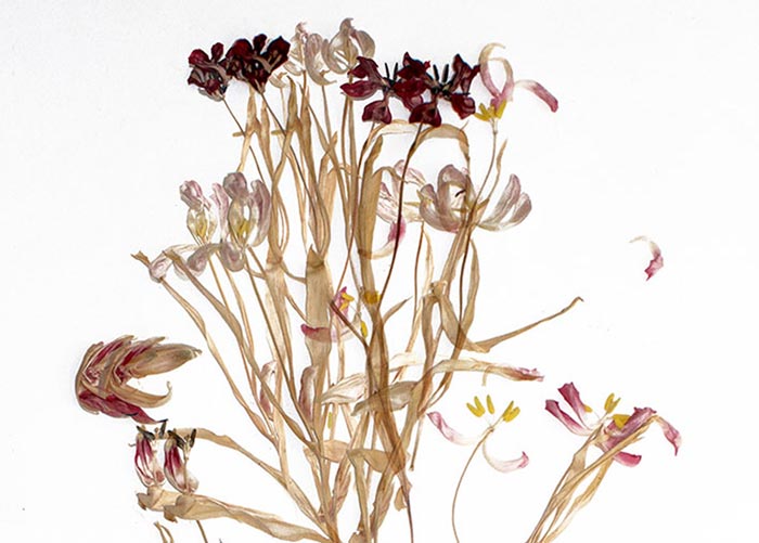 Thinking about a performance she was giving with Leslie Forbes for a ‘Silvering the Cerebrum’ conference, Sue Ridge re-imagined the tulips at Kelmscott Manor...